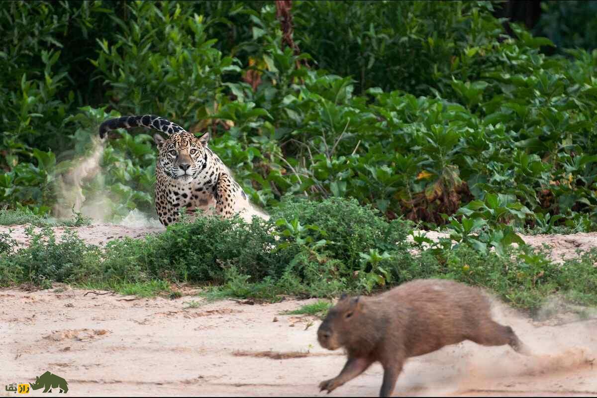 راز بقا: این ویدئو صحنهای هیجانانگیز از شکار کپیبار یا برگچهخوار توسط جگوار را نمایش میدهد. جگوارها، که بزرگترین گربههای امریکای جنوبی هستند، به عنوان شکارچیان ماهر و قوی شناخته میشوند. این حیوانات با فکهای بسیار قوی خود قادرند استخوانهای بزرگ را بشکنند و شکار خود را به سرعت از پا درآورند.
