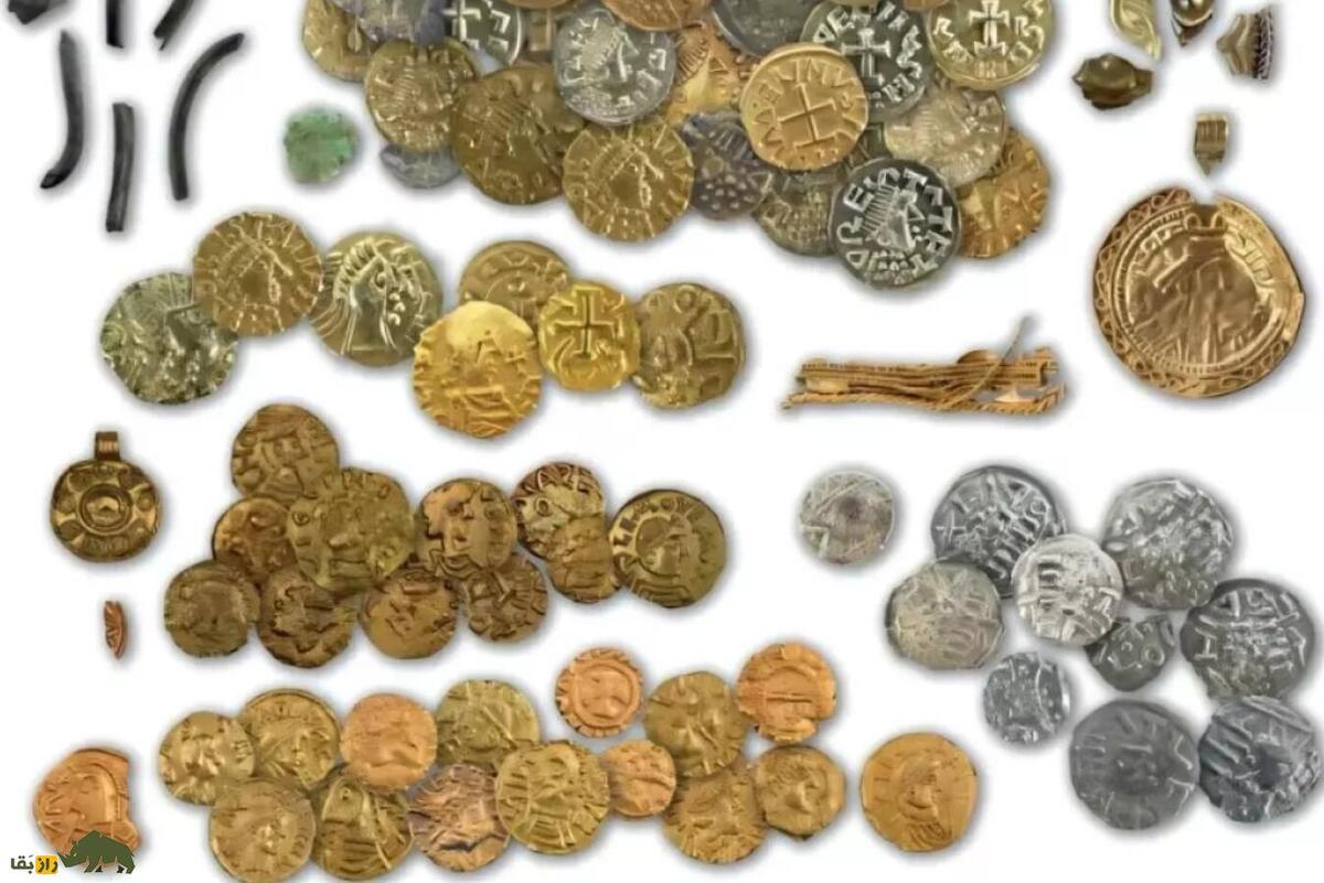 در یکی از این بخشها یک عدد سکه طلا یافت شد، در حالی که در بخش دیگر تقریباً دو دوجین سکه طلای شکسته و سالم، یک آویز طلایی و یک گوشواره نقرهای کشف شدند. بخش سوم نیز حاوی تکههایی از سکههای طلا و یک آویز کوچک بود.