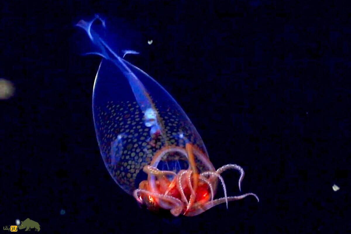 ویدیوی ضبطشده در تاریخ ۹ مارس ۲۰۲۴ توسط زیردریایی کنترل از راه دوری به نام SuBastian تهیه شده است. در این تصاویر، ماهی مرکب جوان با بدنی شفاف و بازوهایی نازک و لطیف، بهراحتی در دل تاریکی اعماق دریا در حال حرکت دیده میشود.