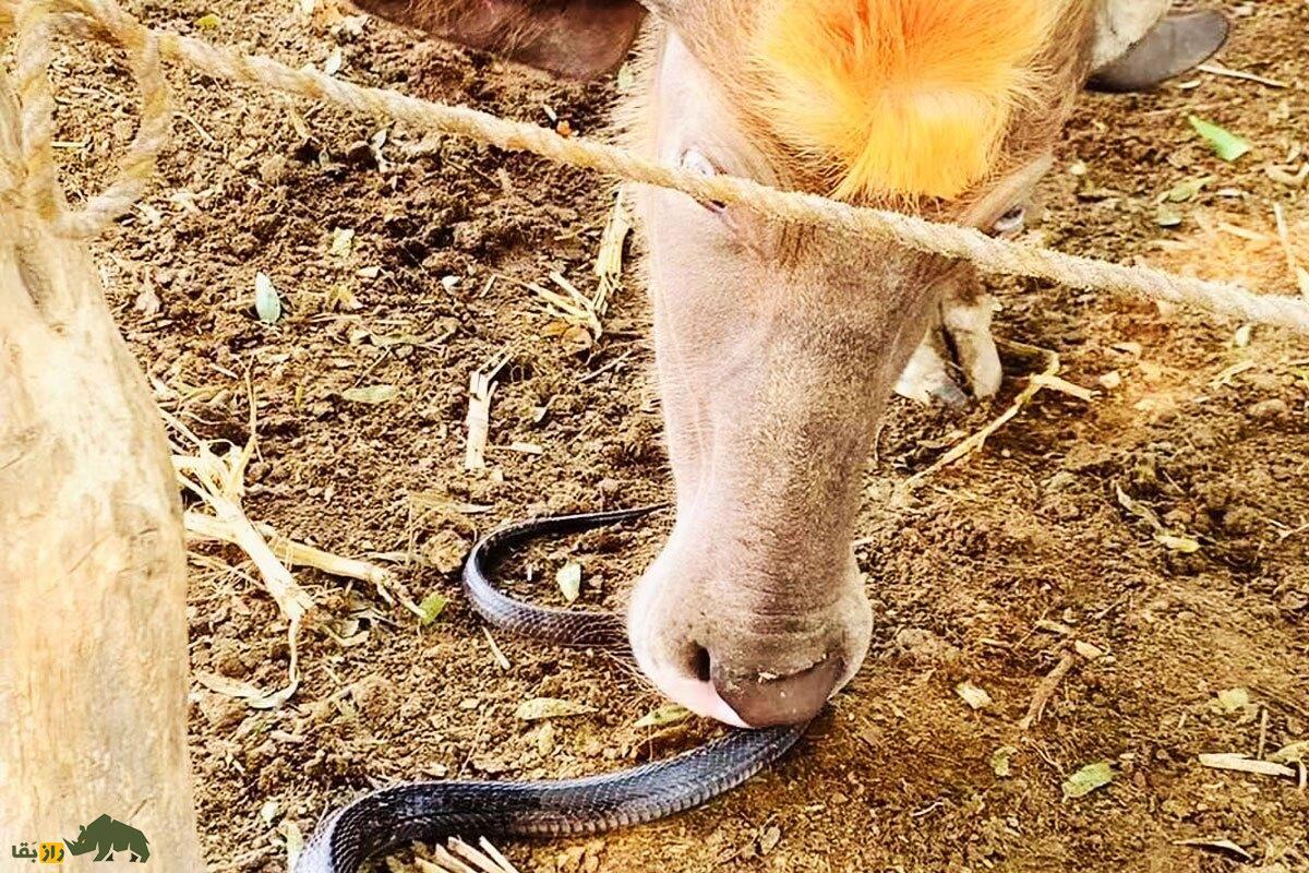 فیلمی باورنکردنی از دوست گاو مو قرمز با مار سیاه