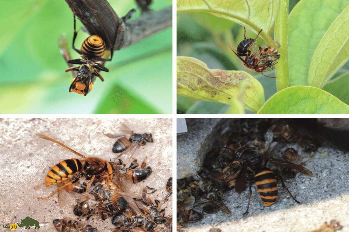 کشتن زنبورها: این زنبورها بهراحتی میتوانند زنبورهای عسل را با ضربههای سریع و قوی آروارههایشان بکشند. آنها قادرند در چند دقیقه چندین زنبور را از پا درآورند.