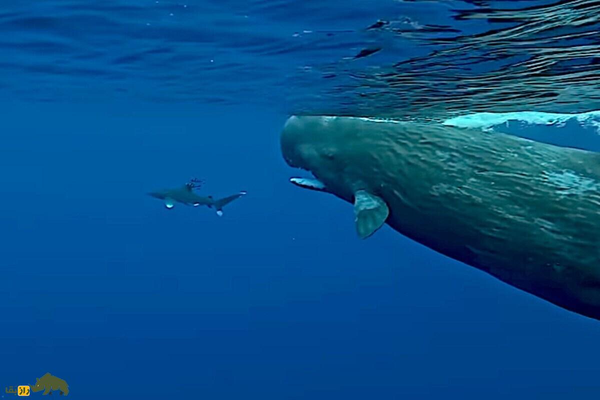 ویدئو | حمله ترسناک نهنگ عنبر به کوسه در اقیانوس؛ نبردی میان دو غول مرگبار دنیای زیر آب