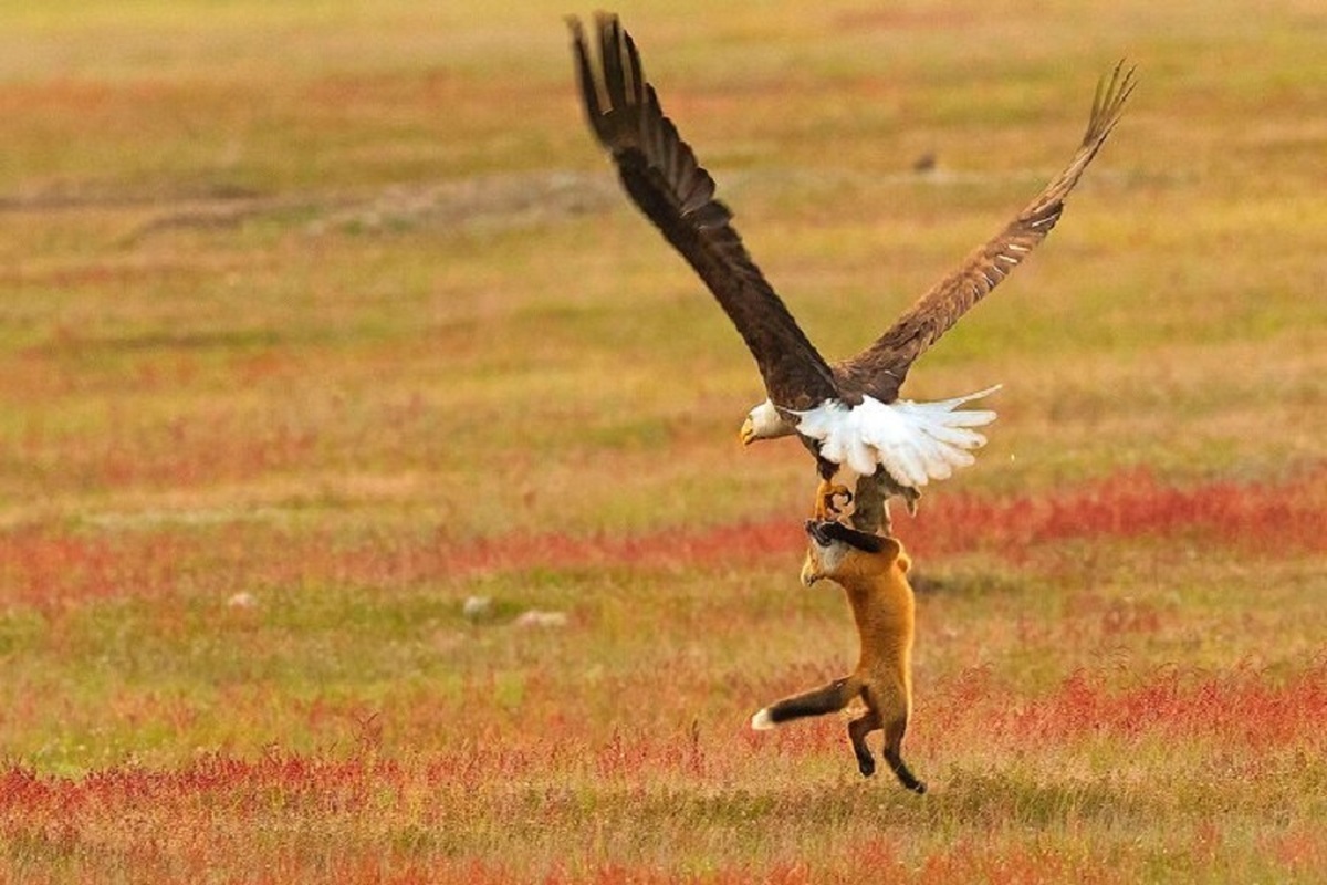 تصاویری ببینید از عقابی که شکار روباه را قاپید و با خود به آسمان برد.