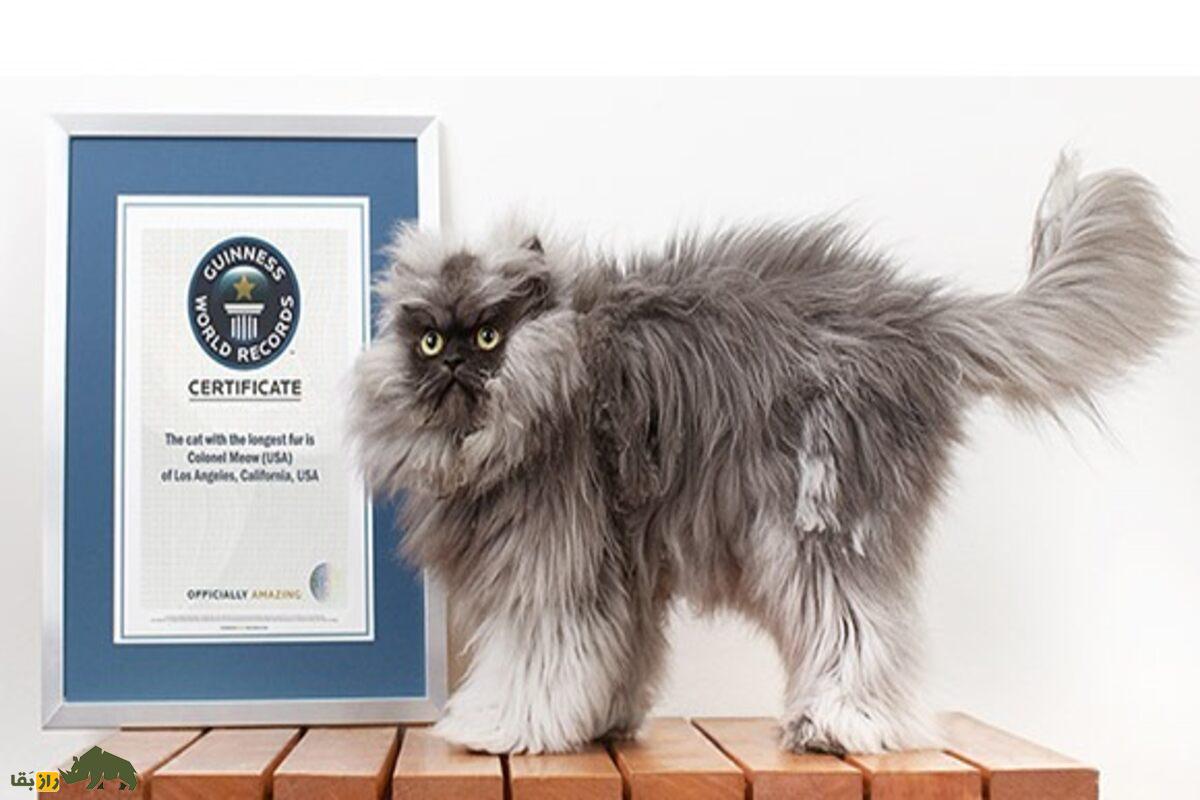 در سال ۲۰۱۲، کلنل میو به عنوان گربه‌ای با بلندترین موی جهان در کتاب رکورد‌های گینس ثبت شد. به گزارش راز بقا مو‌های این گربه به قدری بلند و پرپشت بود که طول برخی از تار‌های مو به بیش از ۱۵ سانتی‌متر می‌رسید. این ویژگی باعث شد تا کلنل میو به نمادی از زیبایی و شکوه موی گربه‌ها تبدیل شود و حتی به عنوان الگوی محبوبی برای دوستداران گربه‌های پرشین و مو بلند شناخته شود.