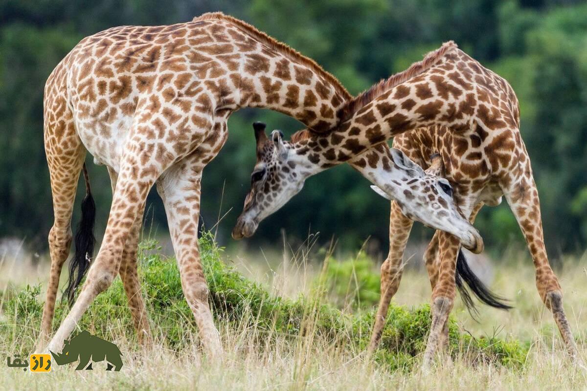 زرافه ها، چه جوان و چه پیر، گاهی اوقات به چند دلیل وارد دعوا میشوند. این میتواند در مورد تعیین اینکه چه کسی مسئول است، رقابت برای غذا، یا در طول فصل جفت گیری باشد. آنها معمولاً این کار را با چرخاندن گردن یا ضربه زدن سر انجام میدهند. مثل این است که بفهمیم چه کسی رئیس است یا چه کسی باید اول غذا بخورد.