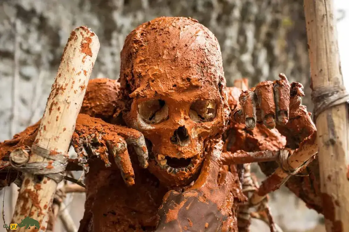 پژوهشگران همچنین اشاره کردند که در برخی مناطق جنوبشرق آسیا، سنت دود دادن اجساد هنوز هم ادامه دارد. در سال ۲۰۱۹، آنها به استان پاپوآ در اندونزی سفر کردند و مشاهده کردند که مردم دانی و پومو اجساد اجداد خود را محکم بسته، روی آتش قرار داده و دود میدهند تا کاملاً سیاه شوند. بر اساس این نمونههای مدرن، پژوهشگران نتیجه گرفتند که اجساد باستانی نیز پس از مرگ محکم بسته شده و برای مدت طولانی روی آتشهای با دمای پایین دود داده میشدند.