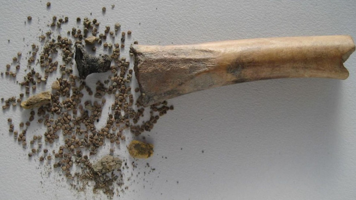 این در حالی است که صدها دانه پیداشده جدید به طور عمدی در یک استخوان ران گوسفند به طول ۷.۲ سانتیمتر قرار داده شده و انتهای استخوان نیز با پوست درخت غان قیراندود و مهر و موم شده بود.