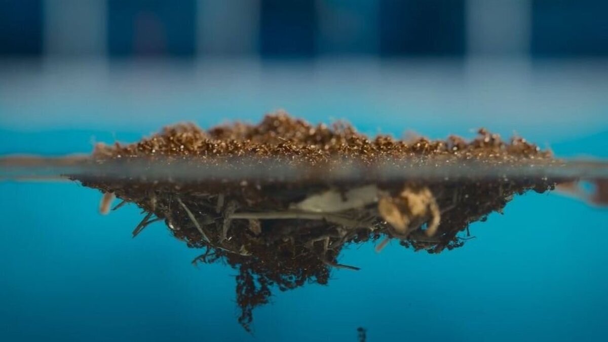 این نوع رفتار مورچهها شناخته شده است، در واقع مورچهها به همین رفتارهای اجتماعی جمعی خود معروف هستند. هنگامی که آنها سعی میکنند کنار یکدیگر شنا کنند به طور ناخودآگاه دست و پا زدن آنها باعث دفع یکدیگر میشود، با این حال آنها به کمک پدیدهای به نام «Cheerios effect» که در اثر کشش سطحی آب به وجود میآید در کنار یکدیگر میمانند.
